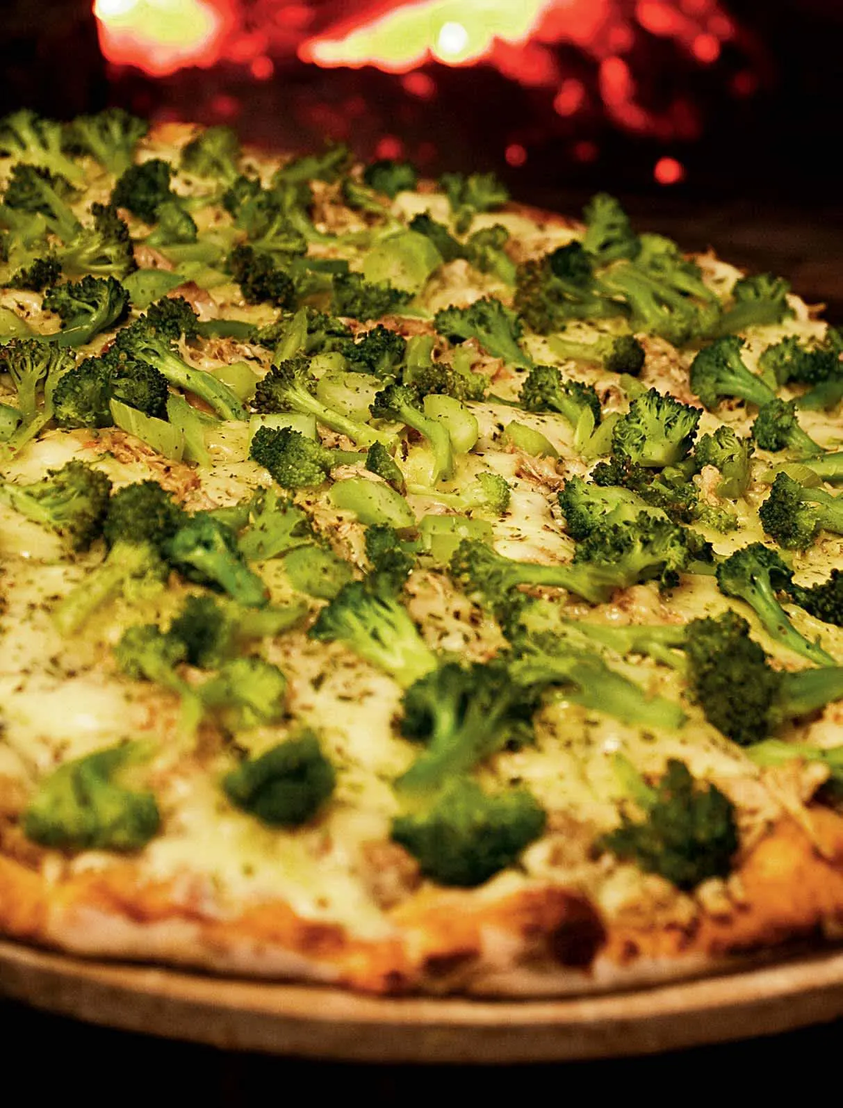 Molho de Tomate, Mussarela, Frango, Catupiyi, Azeitona e Oregano
