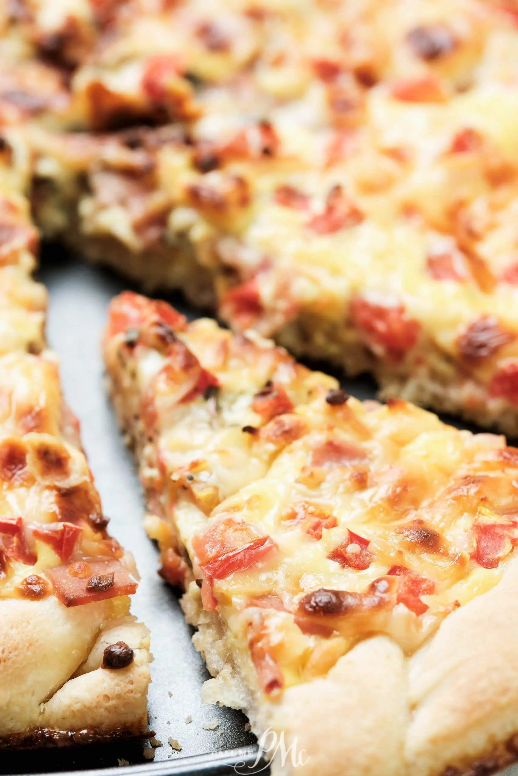 Molho de Tomate, Massarela, Presunto, Ovos, Pimentão cebola Azeitona e Oregano